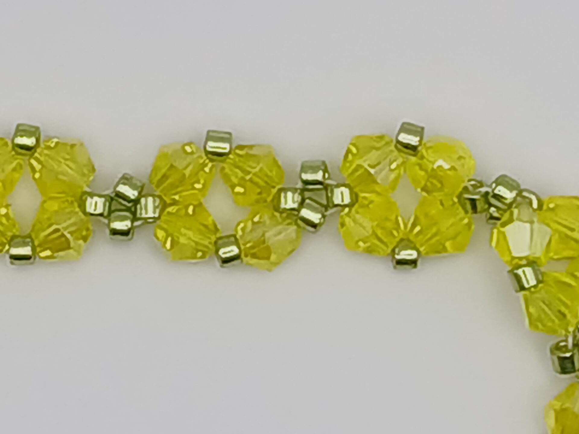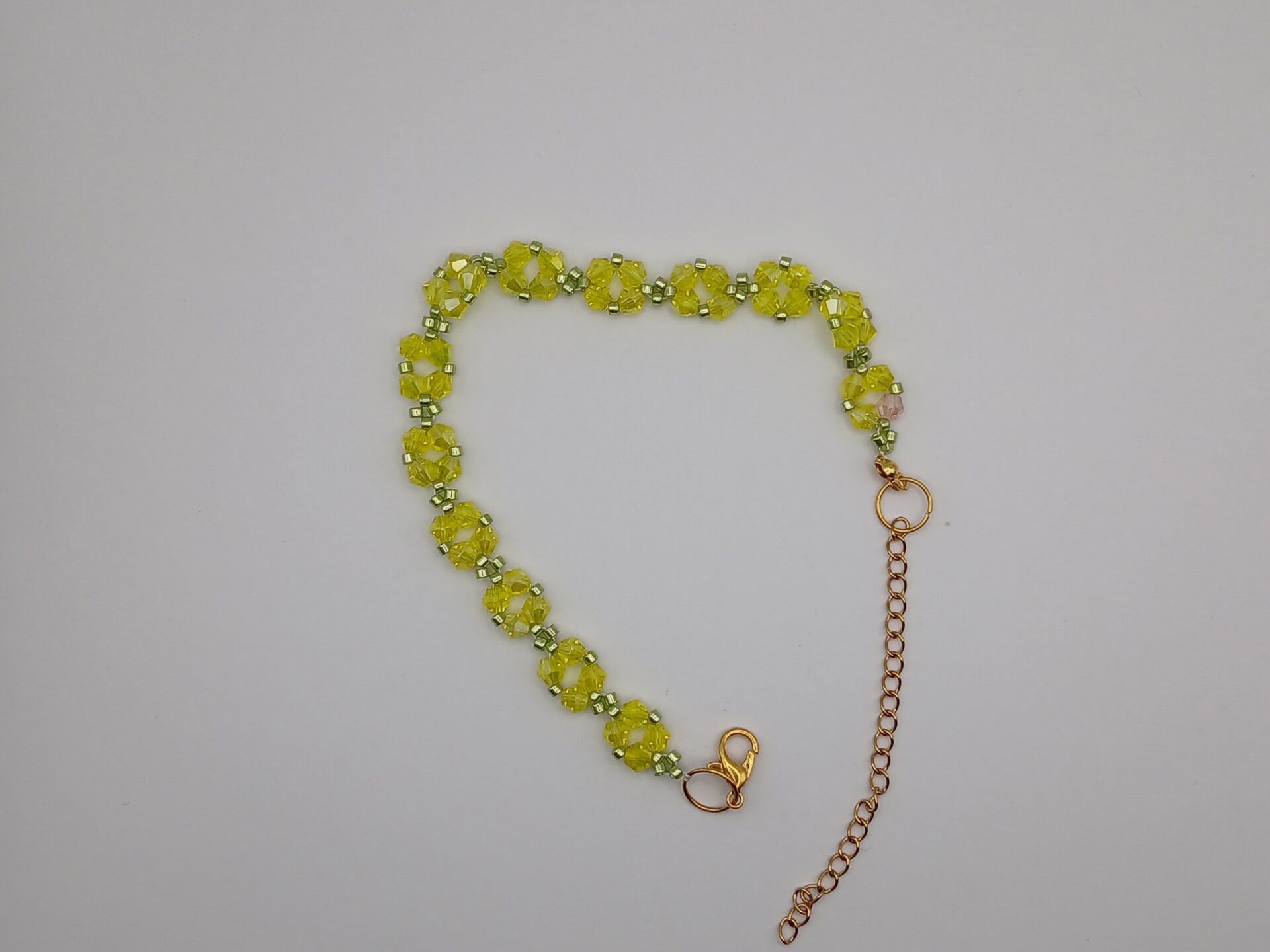 Composé de perles de verre jaunes et dorées, ce bijou scintille tel un rayon de soleil au poignet. Sa lumière vibrante évoque la chaleur de l’été et l’énergie positive des beaux jours.