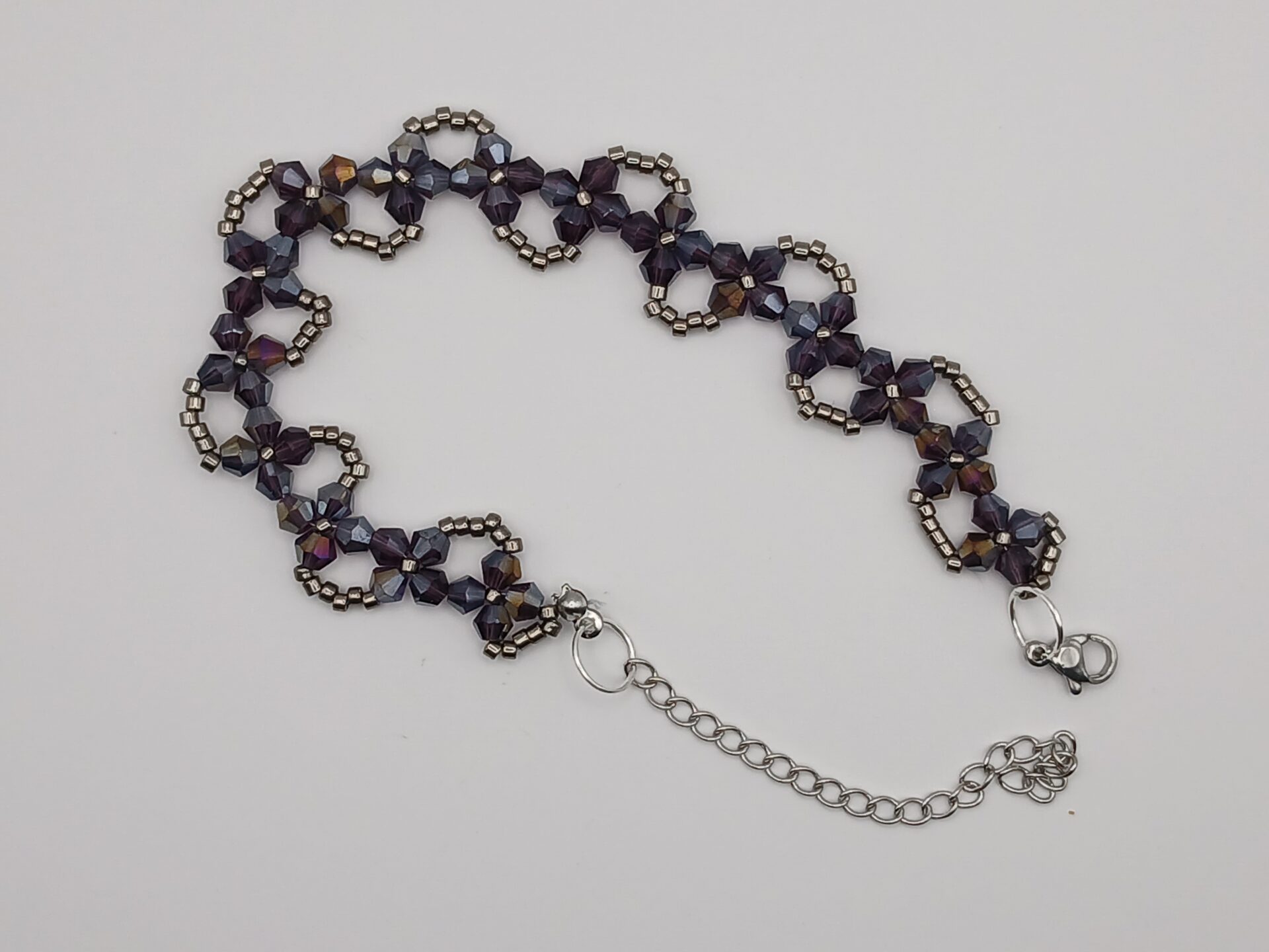 Bracelet Ombre de Lune en perles de verre sombres et argentées. Réglable (16 à 24 cm), fait main et raffiné — un bijou nocturne signé Art-Kange.