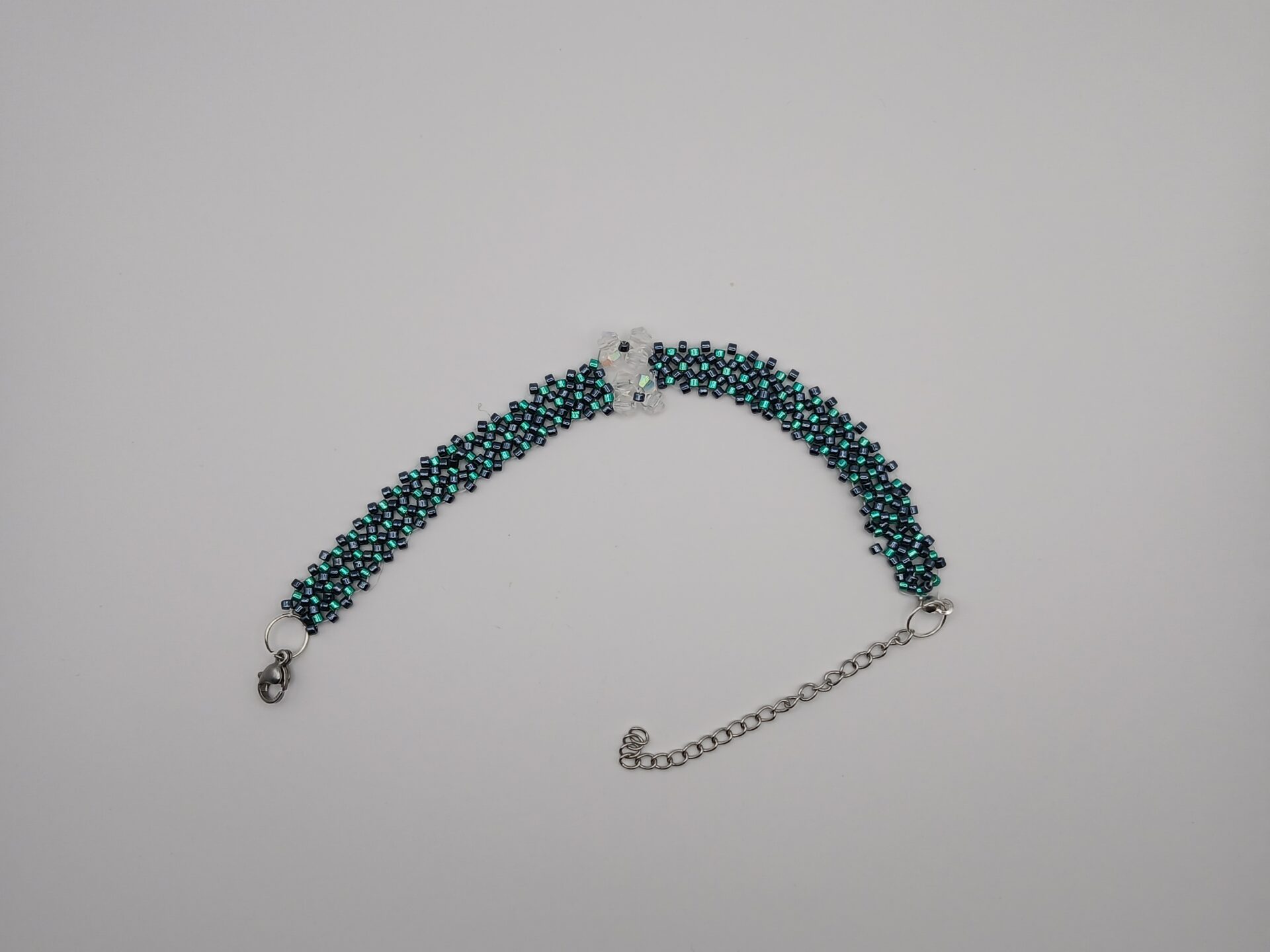 Son motif délicat en perles de verre vert émeraude évoque les reflets scintillants de la mer sous le soleil. Fin et élégant, ce bijou capture la grâce des vagues et la sérénité de la nature.